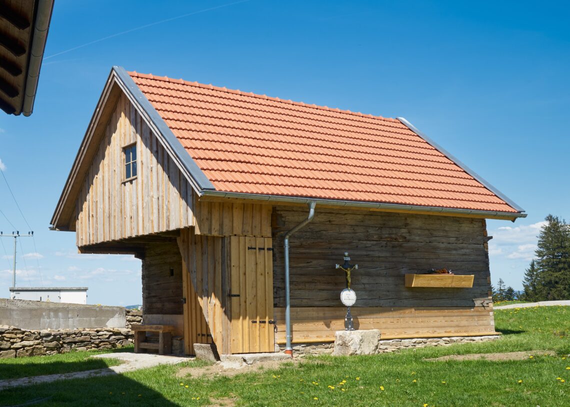 beim renovierten Troadkasten und „Kropf“-Kreuz auf dem Höhenberg